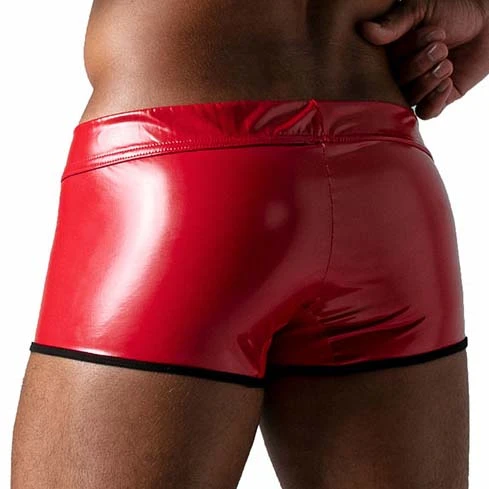Boxer Vinyl TOF PARIS TOF184R. Boxer très sexy dans une coupe taille basse. Tissu imitant le cuir ciré. Poche frontale généreuse. Ceinture élastique avec le logo au nom de la marque. Conseils d’entretien : laver à la main, ne pas sécher en machine, ne pas repasser. 55% Polyester, 35% Polyurethane, 10% Elasthanne.
