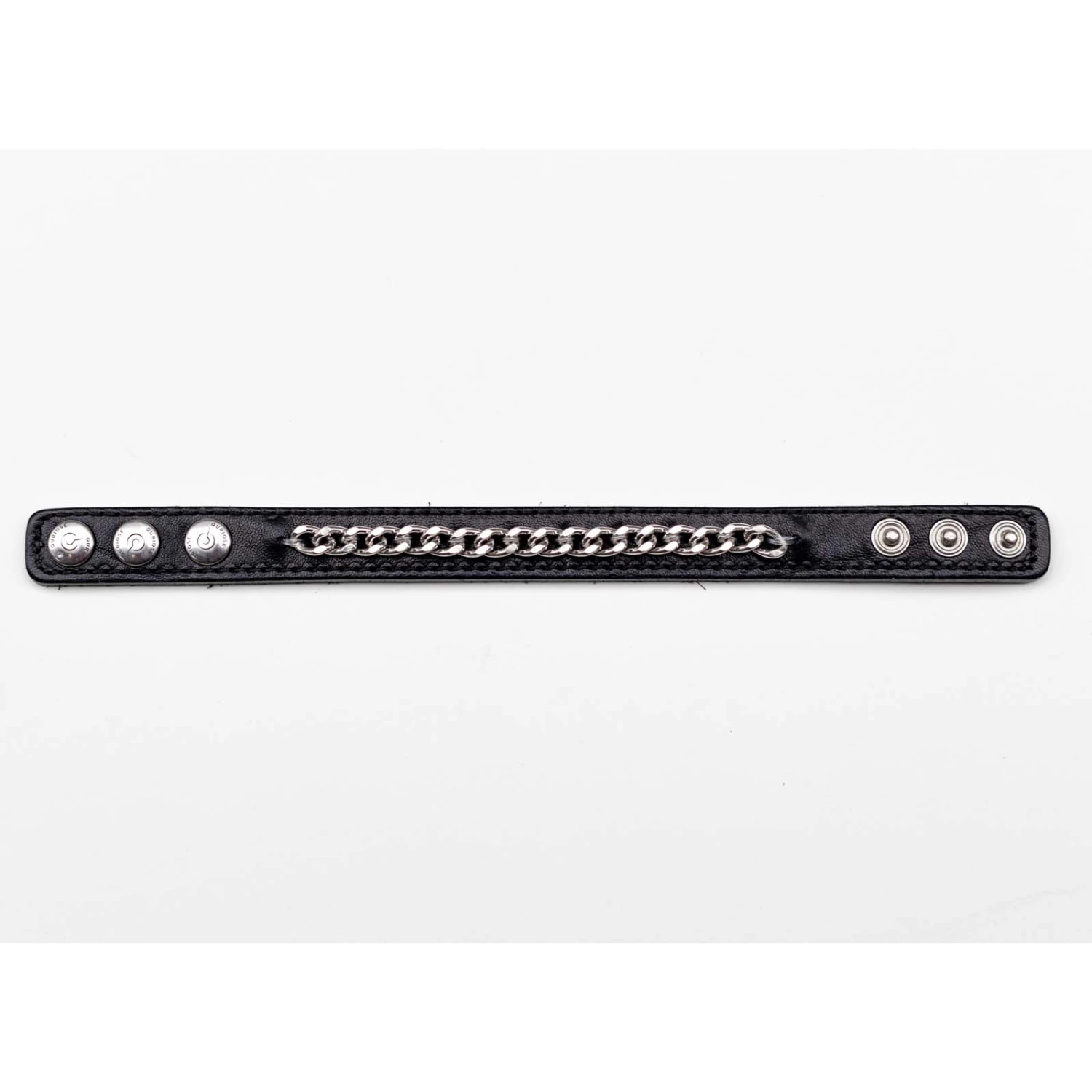 Cockring Quriose Mencore CR1. Découvrez ce Cockring en cuir au tannage végétal qui se pare de chaines en métal argenté. Circonférence minimum : 12 cm, Circonférence maximum : 19 cm. 3 Boutons pression. 100% Cuir.