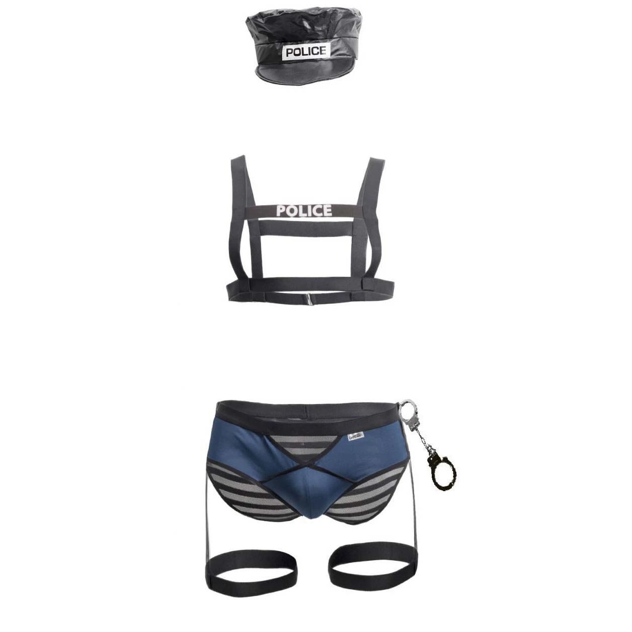 Costume Policier Candyman 99357. Ce costume est composé d’un slip, une casquette, des menottes et un harnais. Avec ce costume soyez au garde à vous ! Cet ensemble pourra pimenter votre jeu de séduction. 96% Nylon, 4% Elasthanne