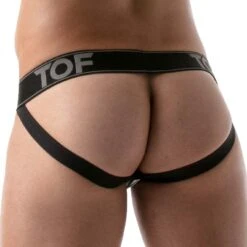 Harnais TOF PARIS TOF240B. Accessoire sexy imitant les porte-jarretelles tout en gardant un look définitivement masculin. Harnais de cuisse en élastique, il sadapte à tous les sous-vêtements grâce à une pince. Ajustable grâce à deux bouton-pression à larrière. Vendu à lunité allant sur lune ou lautre jambe. 56% Polyester, 26% Polyamide, 18% Elasthanne.
