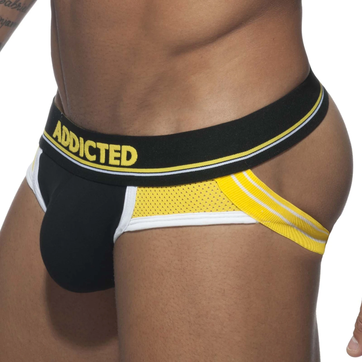 Jock Strap Addicted Push Up Sport AD744. Découvrez le confort extrême de ce Jock strap. Doté dune poche Push Up qui met en avant vos atouts. Ceinture élastique avec le nom de la marque ADDICTED. 40% Polyamide, 50% Coton, 10% Elasthanne.