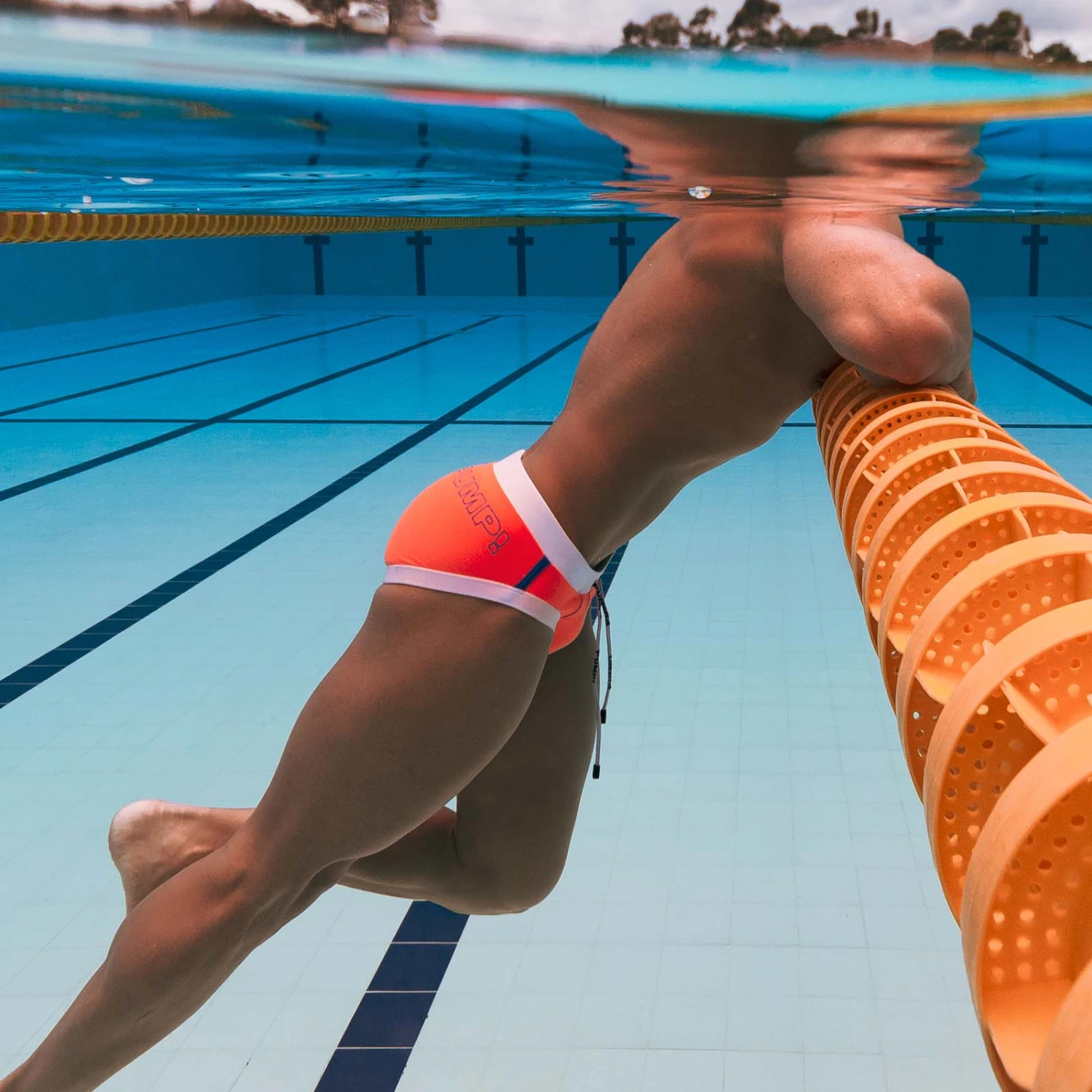 Slip de Bain Pump! Waterbrief 13008. Slip de bain en microfibre avec un séchage rapide. Tissu résistant aux UV (UPF 50+). Bande de couleur de chaque côtés. Ceinture élastique avec cordon de serrage. Logo de la marque sur la fesse droite. 84% Nylon, 16% Elasthanne.
